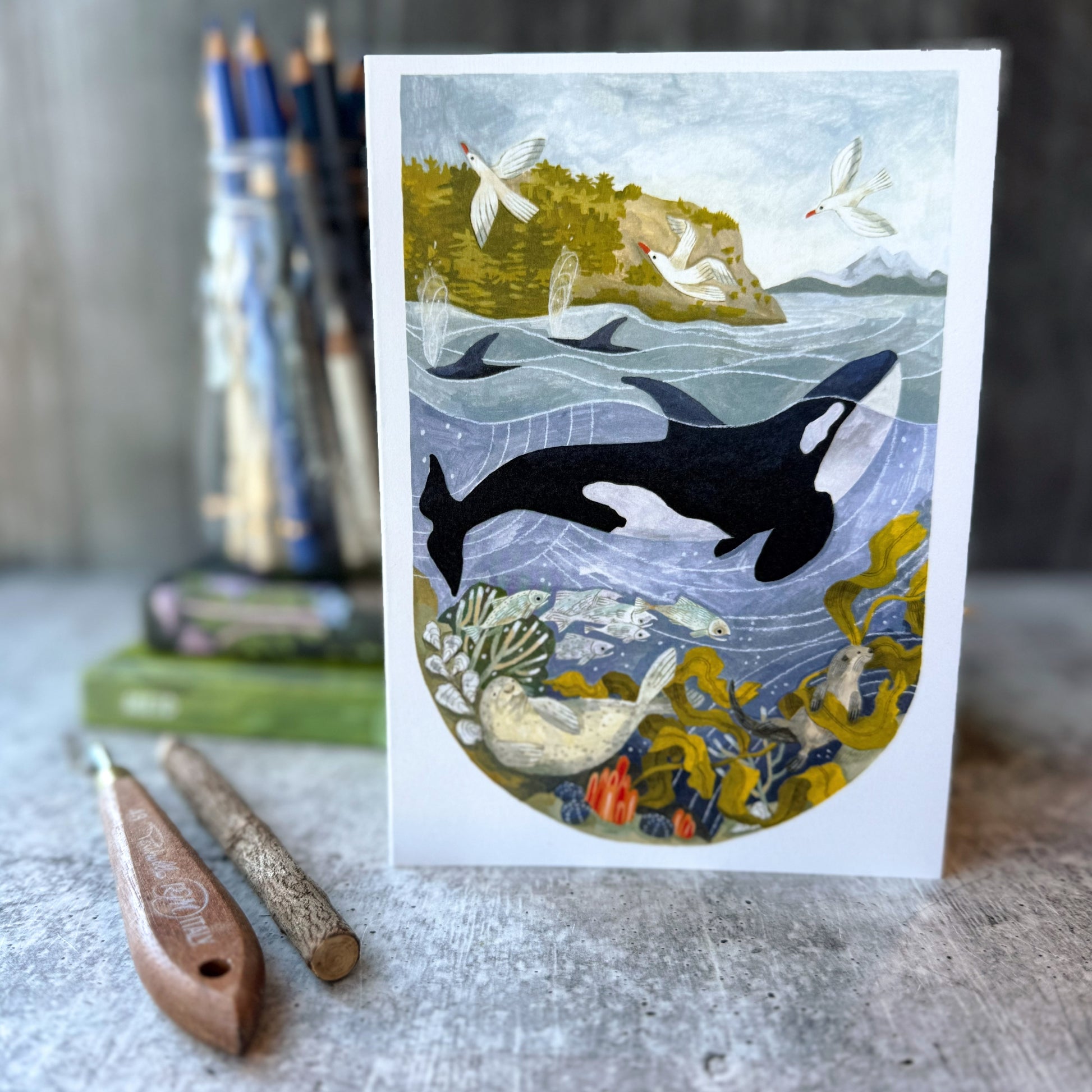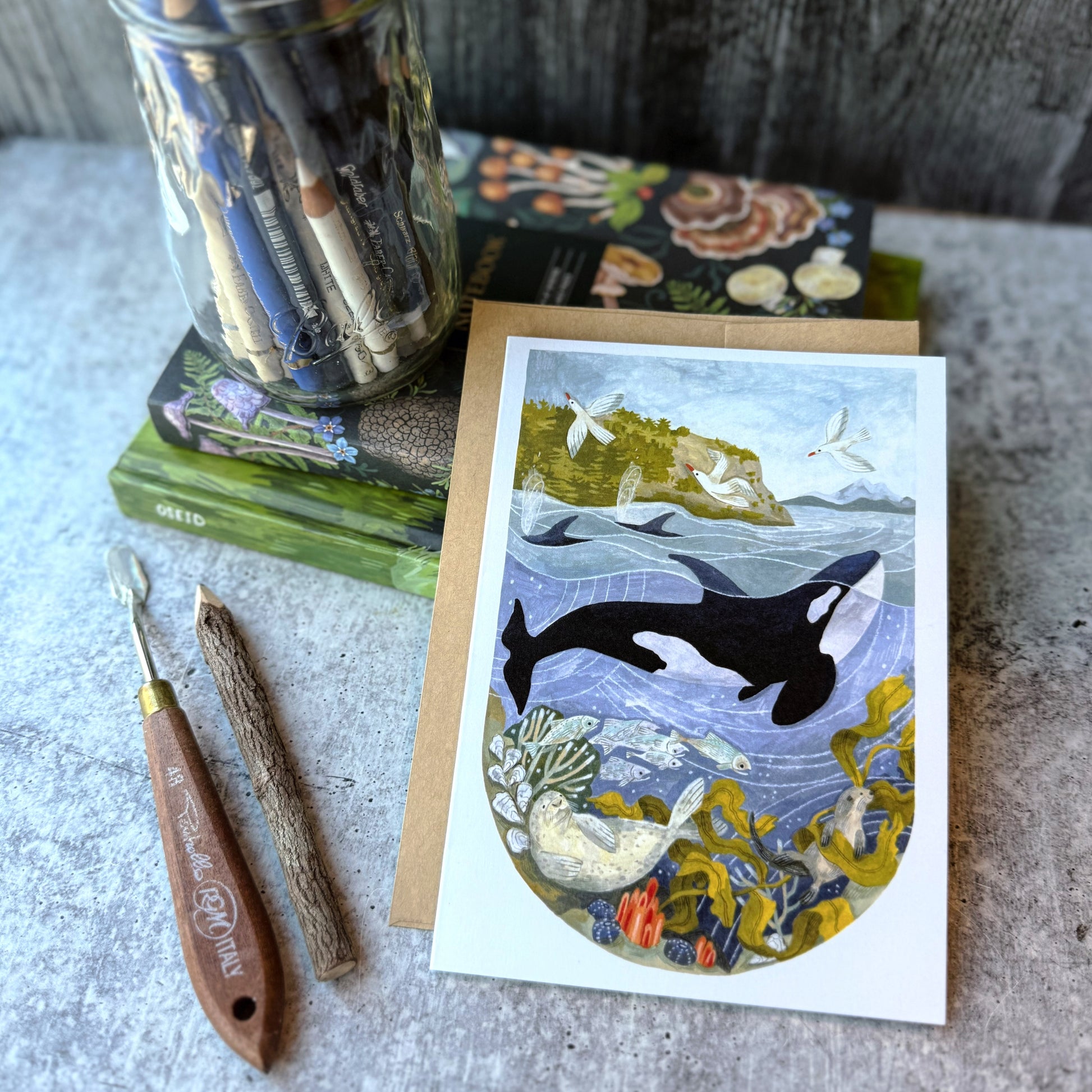 Marine Layer Card is a reproduction of my original gouache painting. Marine Layer is inspired by the Puget Sound and specifically Anacortes, WA as I was commissioned to design and paint this for the 2025 Anacortes Art Festival.